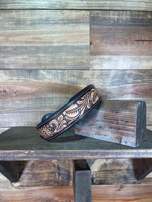 20" Floral & Leaf Tooling Dog Collar w/ Custom Buckle