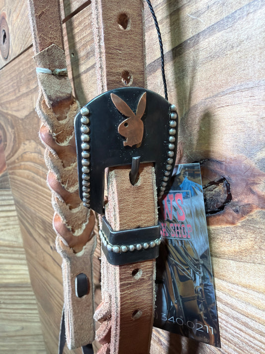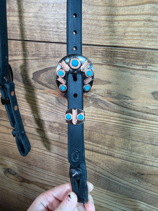 34 Headstall Cheaney Black QC Copper Feather