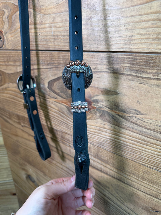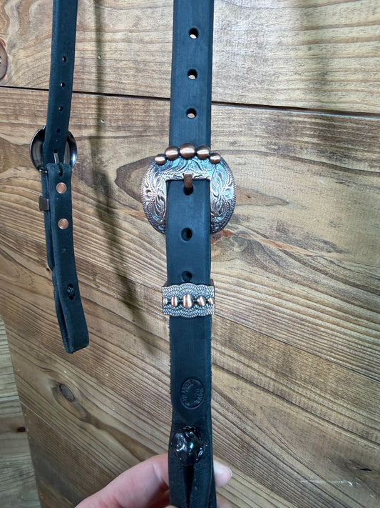 38 Headstall Cheaney Black QC Coper/ Silver
