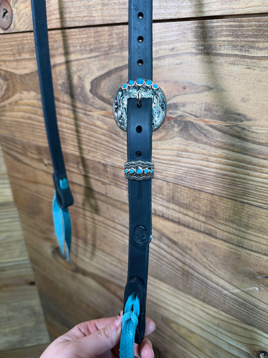 39 Headstall Cheaney Black QC HS Silver/Turq.