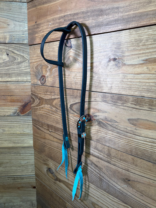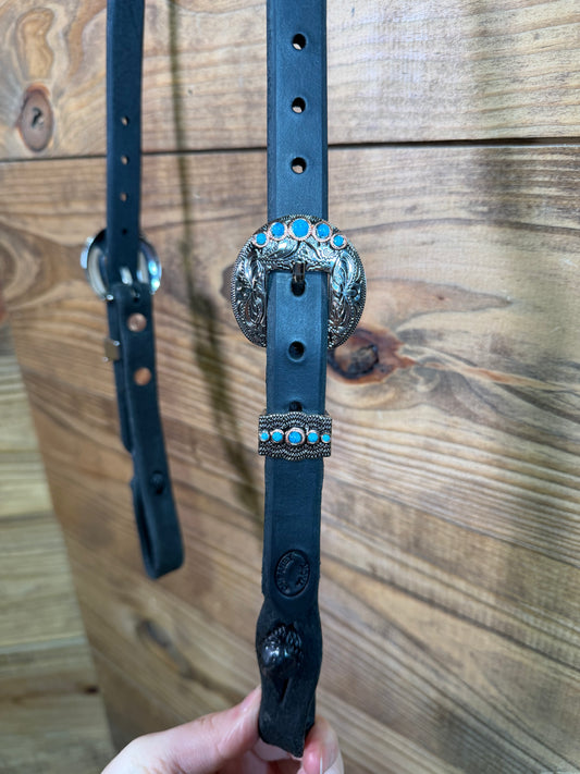 36 Headstall Cheaney Black HS Silver/Turq.
