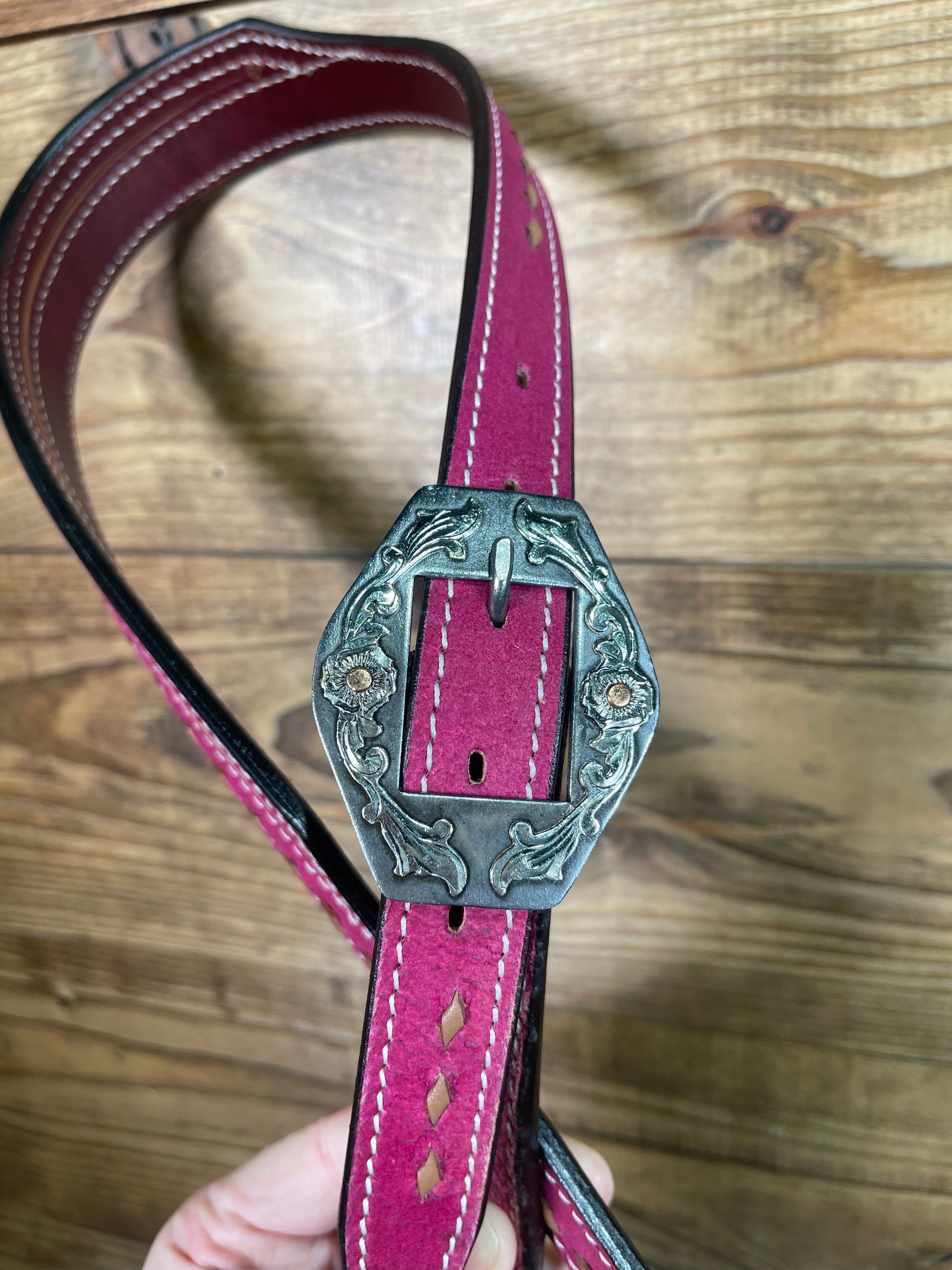 Hot Pink Buckstitch Split- Ear w/ Antique Snip Buckle